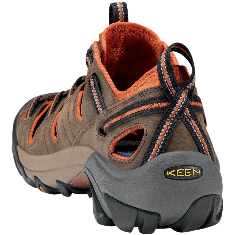 Die Keen Herrensandale verfügt über ein Schnellschnürsystem, welches einen optimalen Halt des Schuhs am Fuß verspricht. Durch einen verstärkten Zehen- sowie Fersenbereich findet während der Wanderung ein verlässlicher Schutz vor äußeren Einwirkungen statt, während der Fuß durch ein anatomisches Fußbett an Polsterung erfährt. So passt sich dieses der natürlichen Form des Fußes an und unterstützt das Fußgewölbe. Für einen sicheren Halt sorgt eine abriebfeste Außensohle mit robusten Flexionskerben.