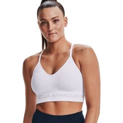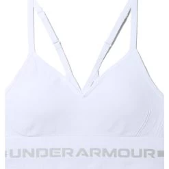 Under Armour Seamless Low Long Bra – schneeweißer Sport-BH
