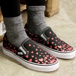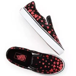 Vans Classic Slip-On Valentines Heart – Slipper für Damen in Schwarz mit Herzen